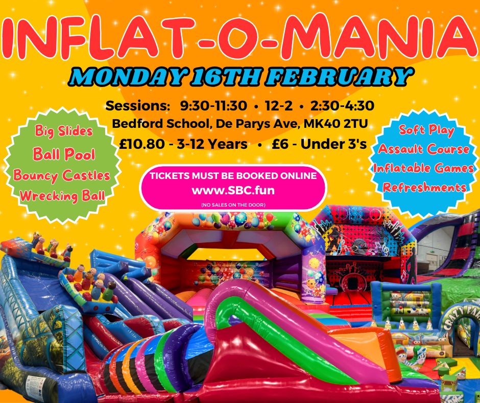 The immensely popular Inflat-o-mania is back in Bedford this February half-term — the ORIGINAL inflatable stay & play fun day out for children in Bedford and surrounding areas!