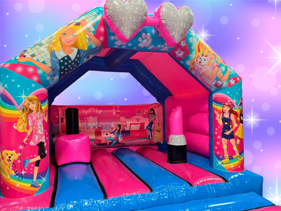 Crafted from dazzling, glittery material and featuring girly artwork, this bouncy castle is a dreamy haven for any budding fashionista.