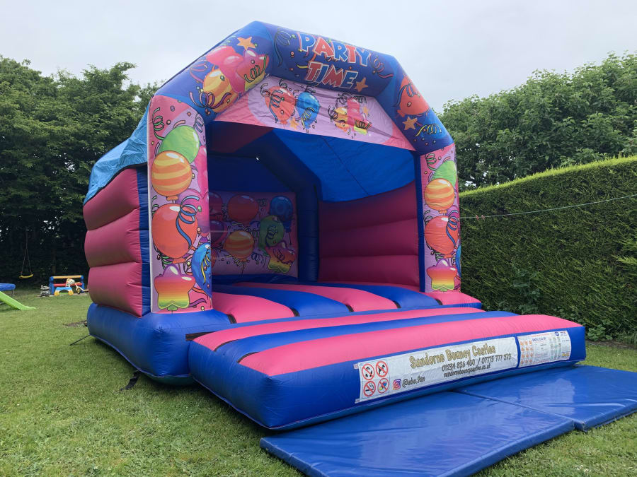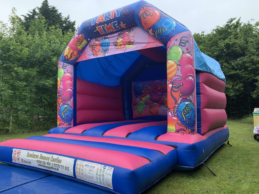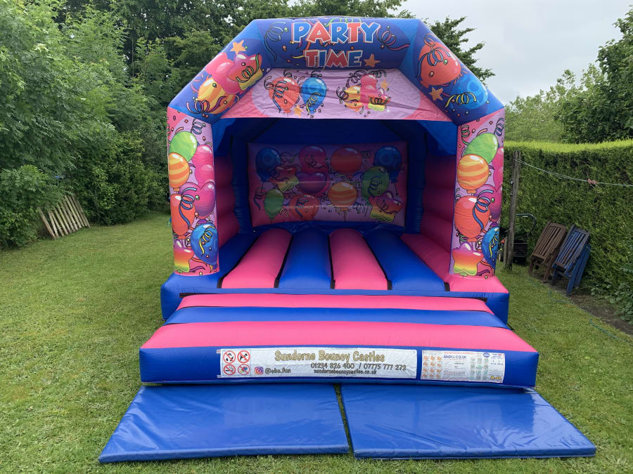 Bring vibrant, bouncing fun to your party with our 15x12ft ‘Party Time’ Bouncy Castle. Perfect for both boys and girls, this inflatable castle features colourful artwork of balloons, streamers, and festive lettering that instantly transforms any event into a lively celebration. Ideal for garden parties in Bedford, school fairs in Keysoe, or community events in Hail Weston, this castle is sure to be the centrepiece of your gathering.