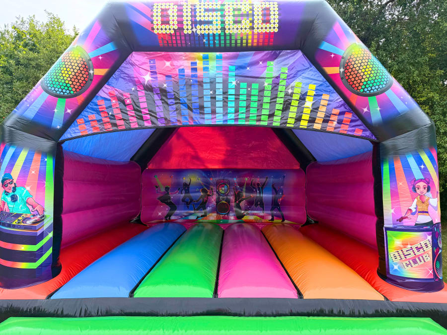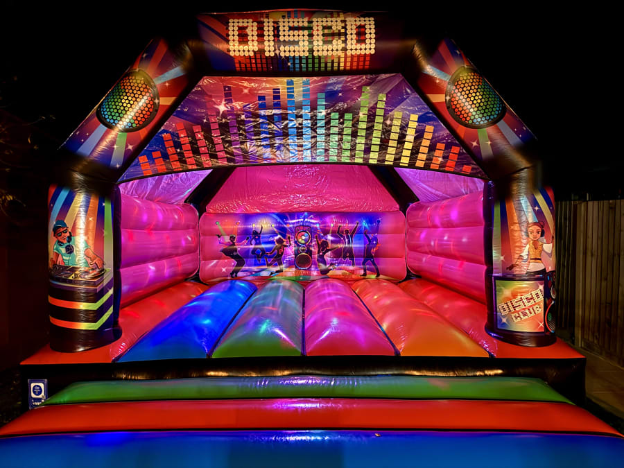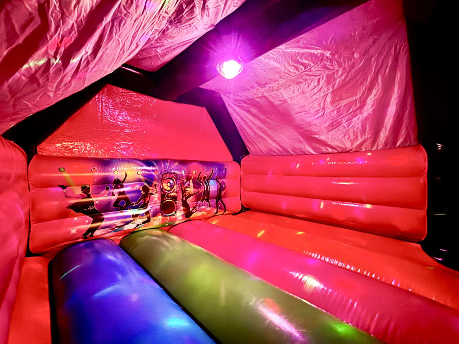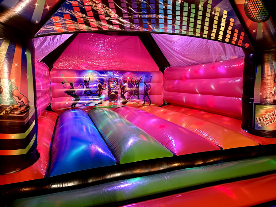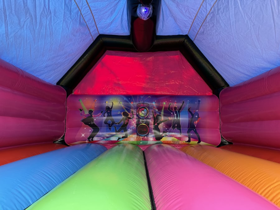 Bring the ultimate party vibe to your next event with our 18x16ft Disco Bouncy Castle – a huge, vibrant inflatable that’s perfect for both children and adults. Whether you’re celebrating indoors or outdoors, this showstopper blends high-energy bouncing with a full disco experience in one incredible bouncy castle.