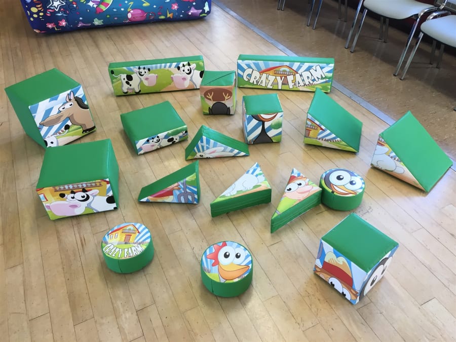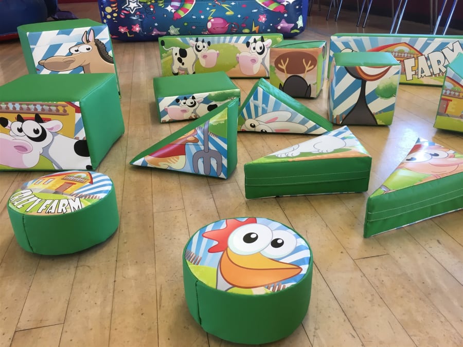 Featuring a 'Crazy Farm' theme, these shapes can be hired individually or as part of a larger package. They also fit perfectly with our 'Crazy Farm Soft Play Park'.