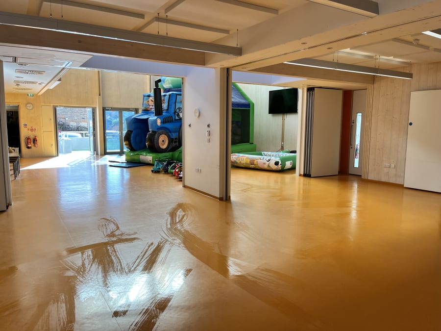 - Easy access – The hall is accessible via a ramp leading directly from the car park to the side door, making setup quick and simple