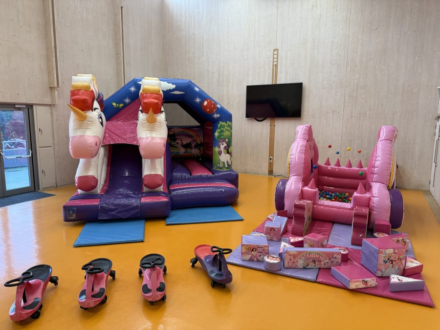 One of the biggest advantages of Christ Church Hall is its tall ceiling height, which allows us to set up some of our biggest inflatables, including: