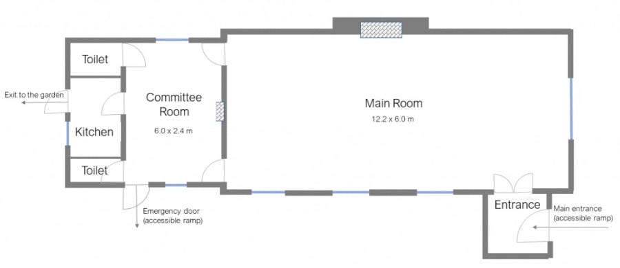 Along with the main hall, it offers convenient facilities such as a committee room, kitchen, accessible toilets, baby changing amenities, wheelchair access, and outdoor space. With parking available on-site, it's an excellent option for intimate gatherings and bouncy castle hire in Bedford.