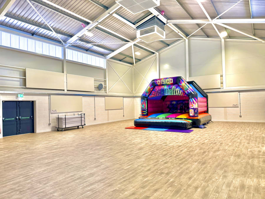 Potton Hall For All is a brand new, purpose-built venue, opened in 2025, located in the small market town of Potton but also a convenient choice for families and organisers travelling in from nearby places such as Sandy and Biggleswade, who are looking for a modern, high-quality indoor event space for bouncy castle hire.